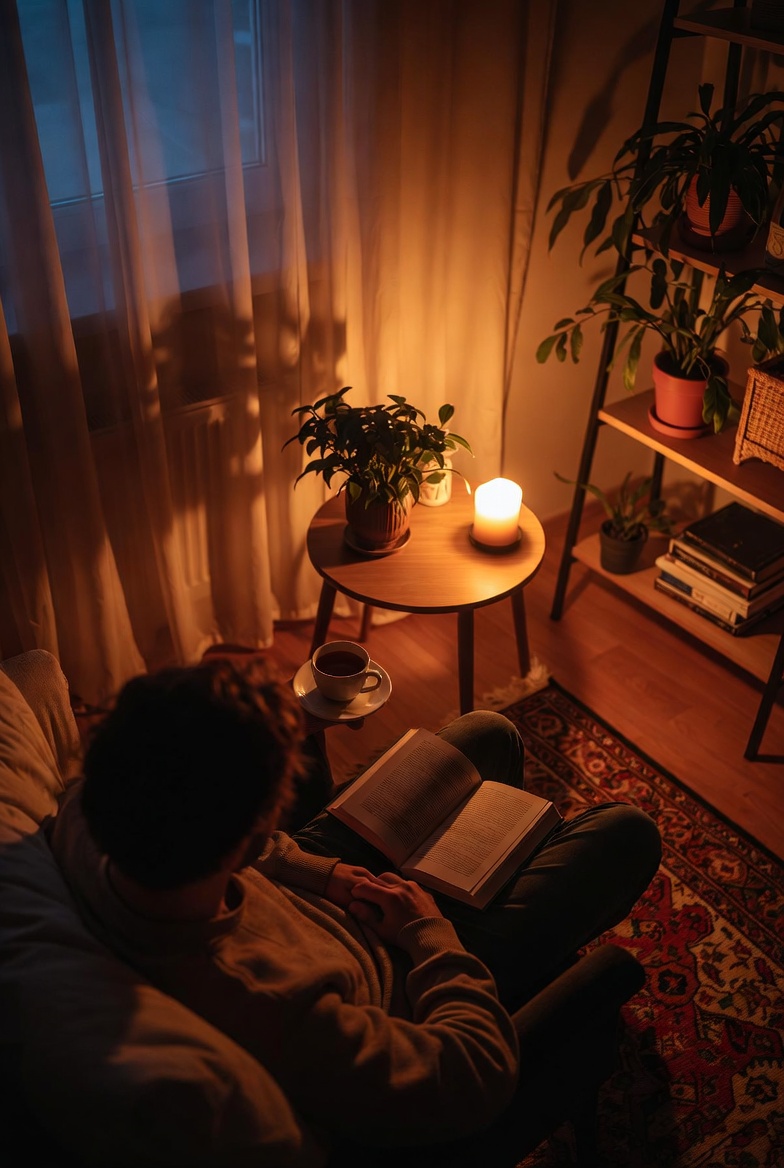 Ciptakan suasana yang mendukung kenyamanan. Gunakan pencahayaan yang lebih redup, nyalakan lilin aromatik, atau putar musik lembut di latar belakang. Detail kecil ini membantu menghadirkan atmosfer yang lebih hangat.